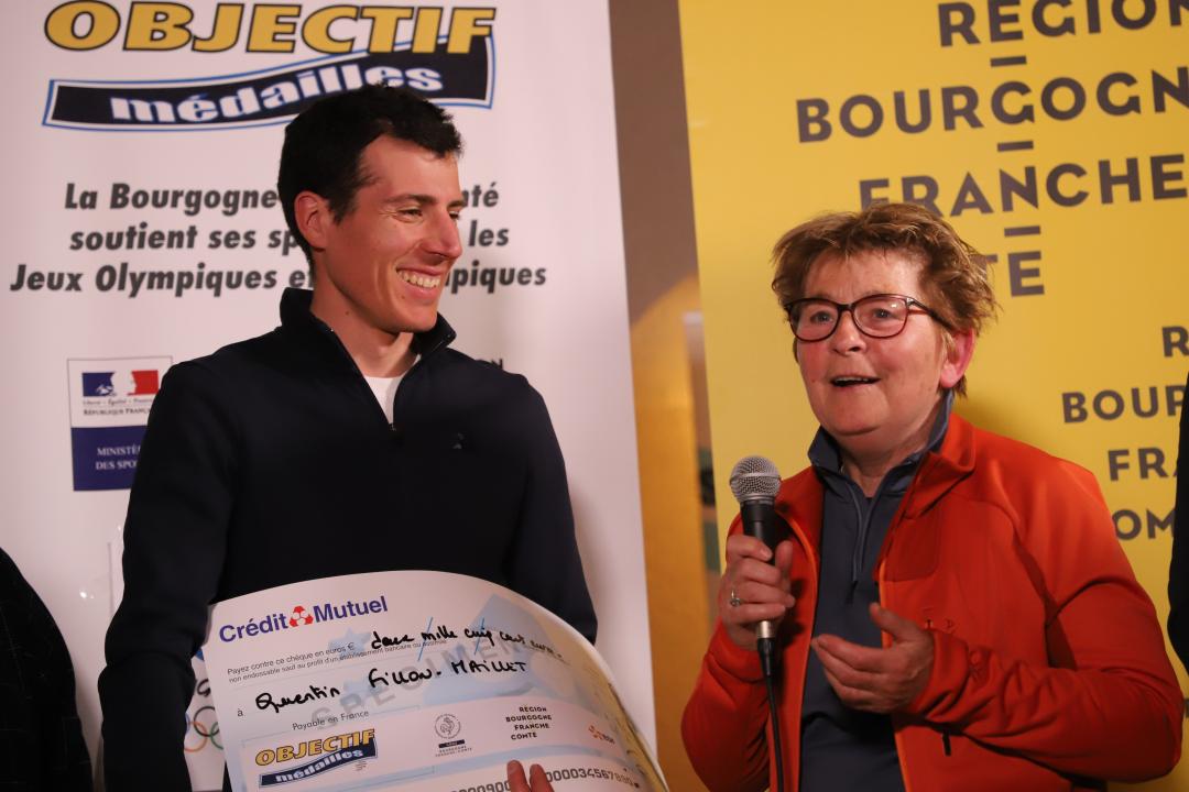 À cette occasion, la Région, par la voix de sa présidente Marie-Guite Dufay, a exprimé « sa fierté et sa reconnaissance » à l’égard de « QFM » mais aussi de tous les représentants de la Bourgogne-Franche-Comté aux JO. Samedi 2 avril, au Fort des Rousses, ces huit athlètes (voir liste ci-dessous) ont été honorés au cours d’une cérémonie. L’association Objectif Médailles –qui accompagne la préparation et le parcours olympique des sportifs avec le soutien de la Région– leur a remis à chacun un chèque de 2 500 €. Un acompte de 1 500 € leur avait déjà été attribué fin 2021.
