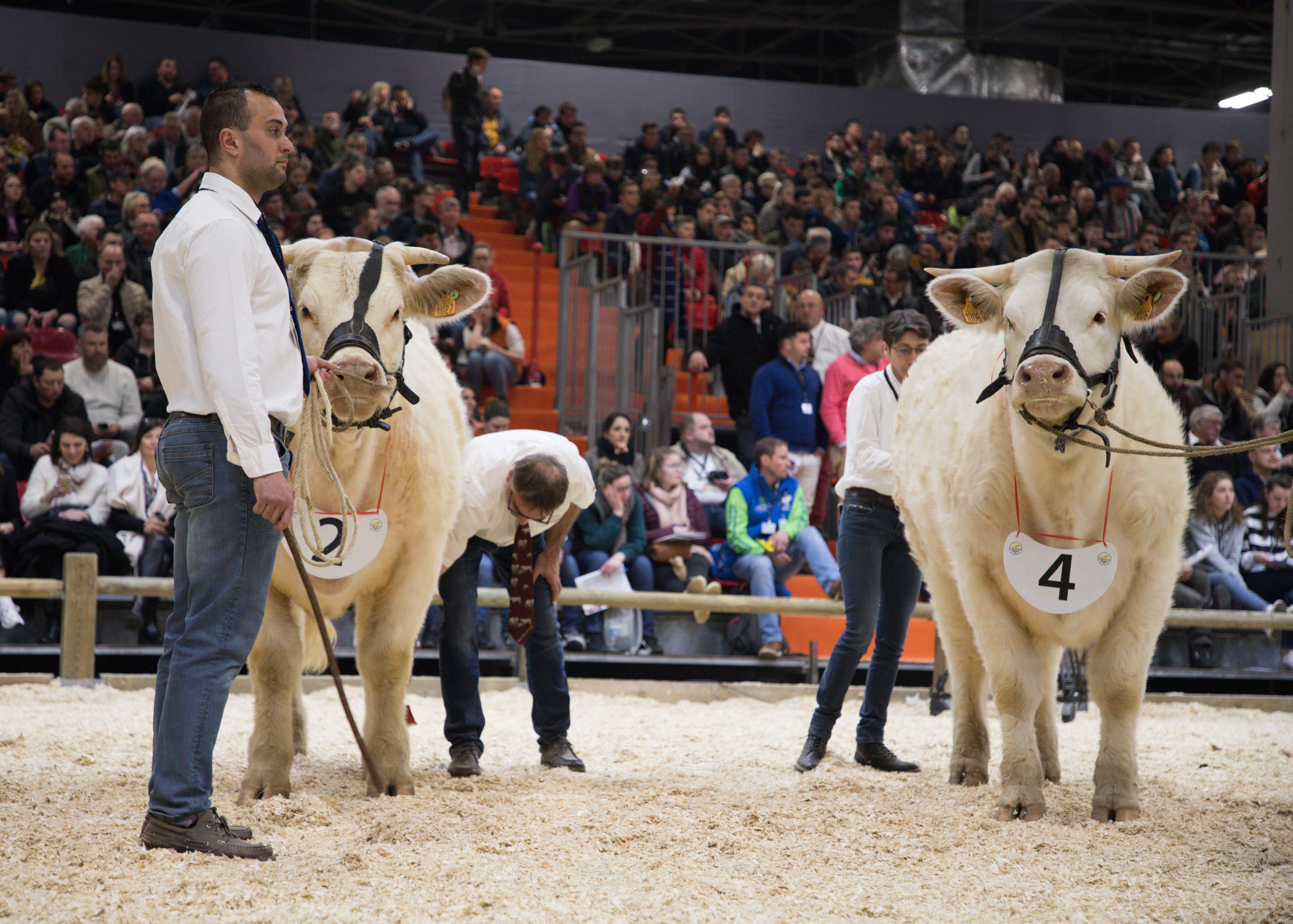L’épreuve dure une bonne trentaine de minutes durant lesquelles les juges demandent aux éleveurs de faire marcher leurs animaux, de les faire tourner ou de s’arrêter. La tension est palpable. Le public est au rendez-vous dans les gradins.