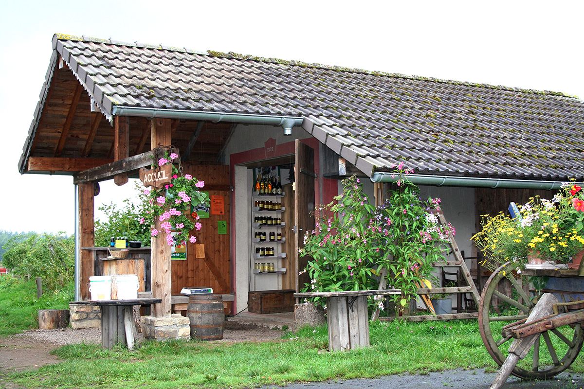 Le bon plan : face à la ferme Menigoz, une autre exploitation : l’EARL de la Montagne. On y élève des cochons, destinés notamment à produire le fameux jambon de Luxeuil. Mais comme dans le cochon, tout est bon, on élabore également d’autres produits, et notamment de fameuses terrines : de campagne, aux champignons, à la cerise, à la mirabelle … Un « bar à terrines » a même été aménagé pour pouvoir les déguster sur place. L’endroit est extraordinaire ! Créé en pleine nature, décoré avec des matériaux de récup et agrémenté de transats, on y déguste bien sûr les terrines, mais aussi les Munster de la fromagerie d’en face, des frites fraîches, des légumes à croquer et des glaces de la ferme. Le menu est à 14,50 €, boissons non comprises. Quand on vous dit que c’est un bon plan !