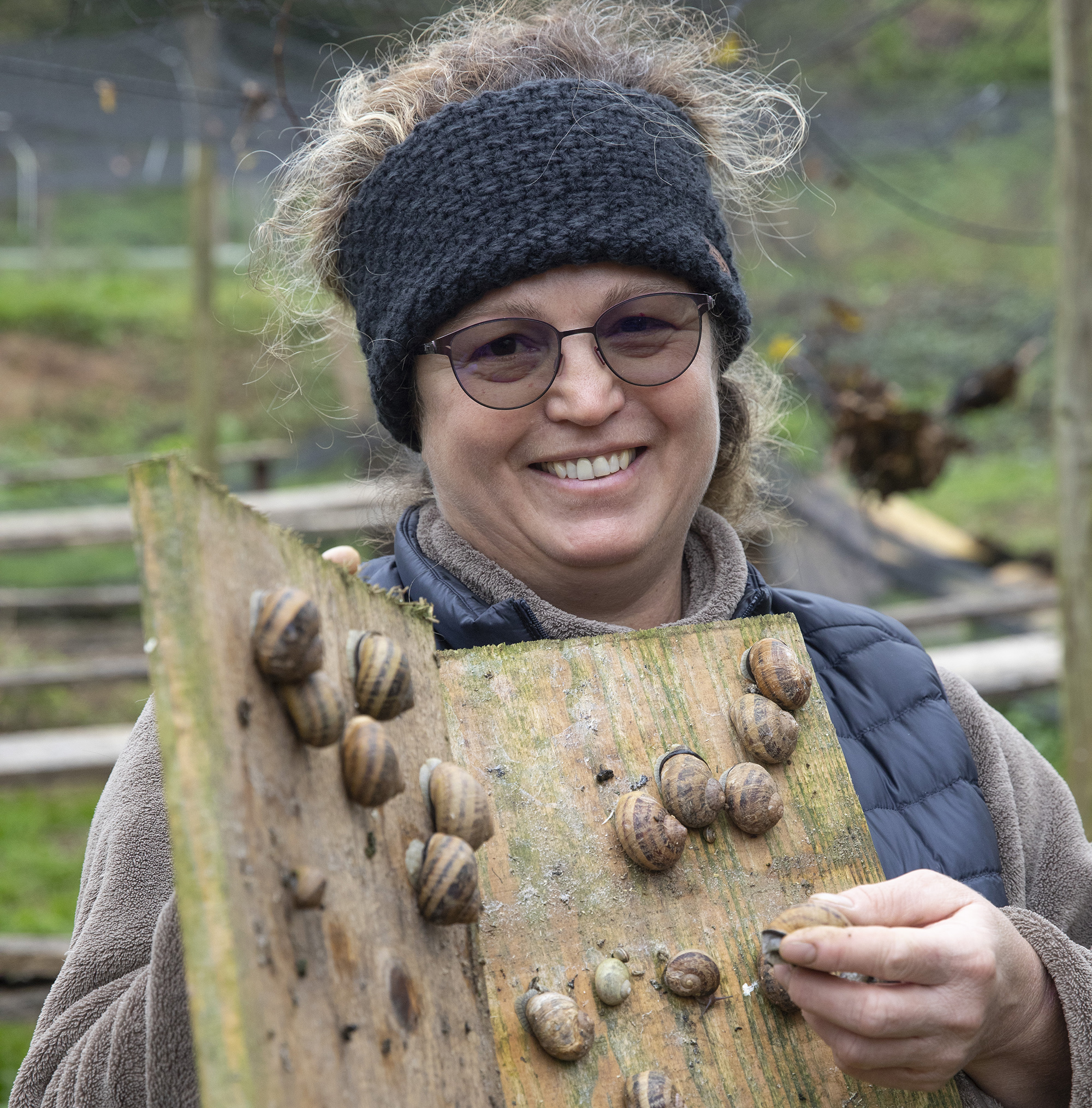 Si votre périple vous emmène tout à l’est des Vosges saônoises, on ne peut que vous conseiller de vous arrêter au domaine des Essarts. A quelques kilomètres de Belfort, Brigitte Müller a créé en 2015 un élevage d’escargots. Des gros gris que Brigitte élève et transforme elle-même : en coquilles ou croquilles, farcis au munster, au comté, au morbier, à l’ail des ours ou à la ciboulette...