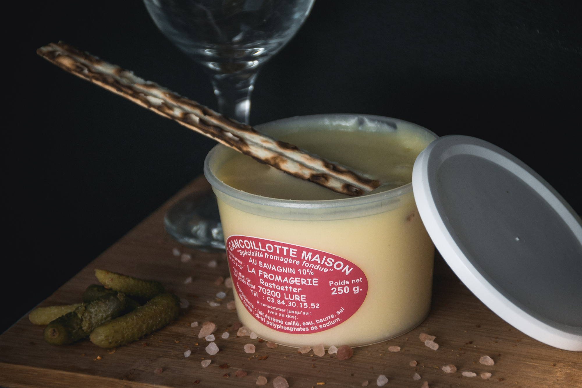 Venir en Haute-Saône et ne pas goûter la cancoillotte, c’est comme revenir de Bretagne sans avoir mangé une galette ! La cancoillotte est d’avantage produite dans le sud du département, mais il existe quelques producteurs dans les Vosges saônoises. A Lure, la fromagerie Rastaetter en confectionne depuis toujours : au beurre, à l’ail, au savagnin, à la moutarde, aux morilles, à l’échalote, au cumin … On la trouve même en association avec des saveurs étonnantes, comme la fameuse crème du Sapeur (au Roquefort) ou la Facétie (cancoillotte, oignon, ail, poivron, paprika, gingembre, raifort). La famille Rastaetter voue un tel culte à la cancoillotte qu’elle en a fait l’objet d’un concours : lors de la braderie de Lure, elle organise le concours du plus gros mangeur de cancoillotte : 3 pots en 4 minutes, soit 750 grammes de fromage, record à battre !