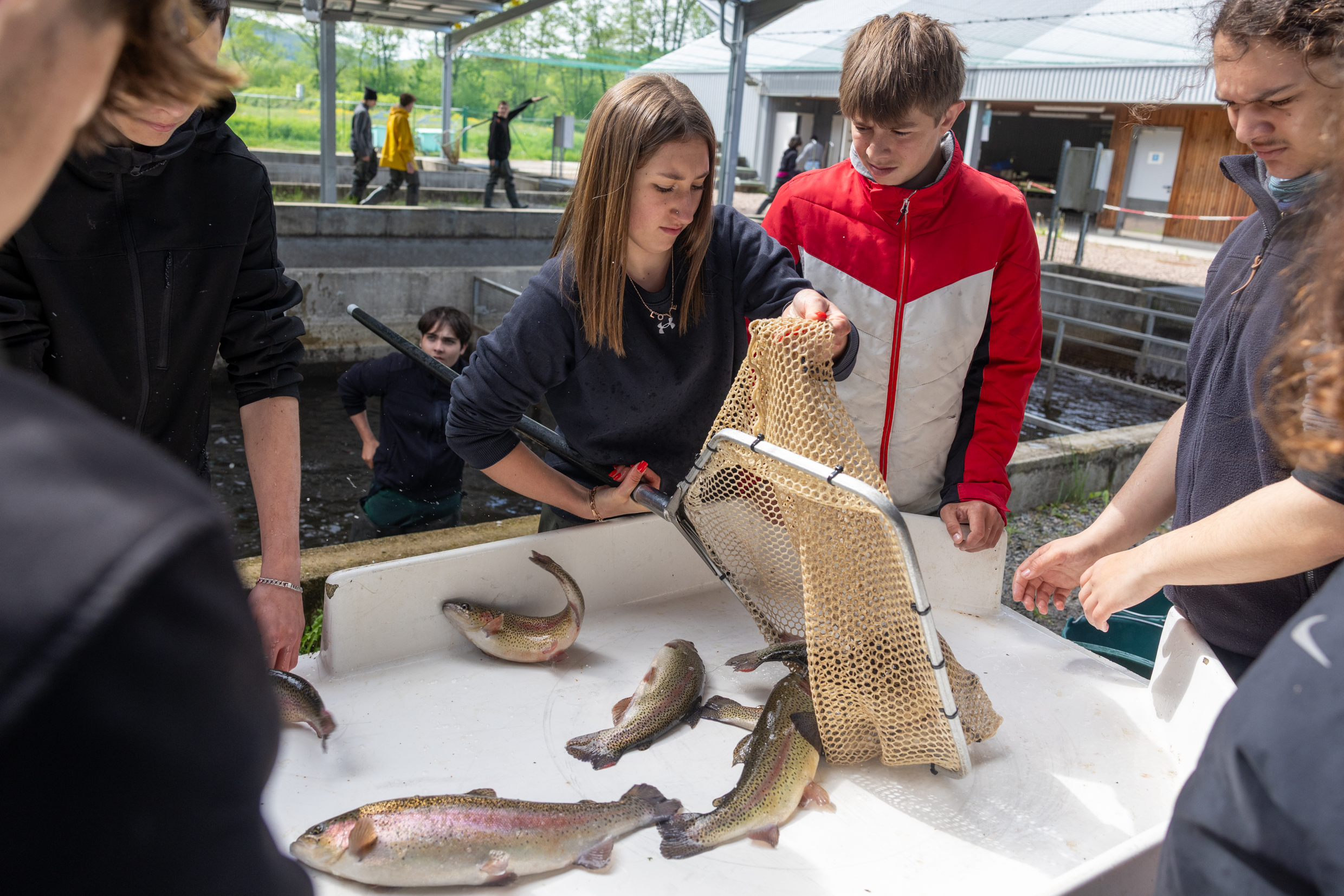 Durant trois ans, les élèves vont alterner cours théoriques et travaux pratiques, dans tous les domaines : « Ceux qui sortent après le bac trouvent facilement des postes comme salariés d’exploitation, ou comme techniciens de fédérations de pêche », explique Florian GUILLET, directeur des piscicultures du Morvan. Ils peuvent aussi poursuivre par un BTSA aquaculture, également dispensé à Château-Chinon. D’autres portes s’ouvrent alors aux futurs diplômés, en eau douce, en eau de mer, en France ou à l’étranger : « Un de nos anciens élèves est aujourd’hui guide de pêche en Irlande. Trois autres ont été embauchés à l’aquarium de Lausanne. Le panel d’offres est large », promet Florian. Le métier nécessite force et courage, avec un travail en extérieur dans des conditions parfois difficiles. Mais il évolue, avec l’aide des nouvelles technologies. Les machines de tri sont de plus en plus automatisées. À tel point que le métier attire désormais aussi les femmes : « Il y a dix ans, pas une femme ne suivait cette formation. Cette année, sept femmes comptent parmi les effectifs », se félicite Florian.