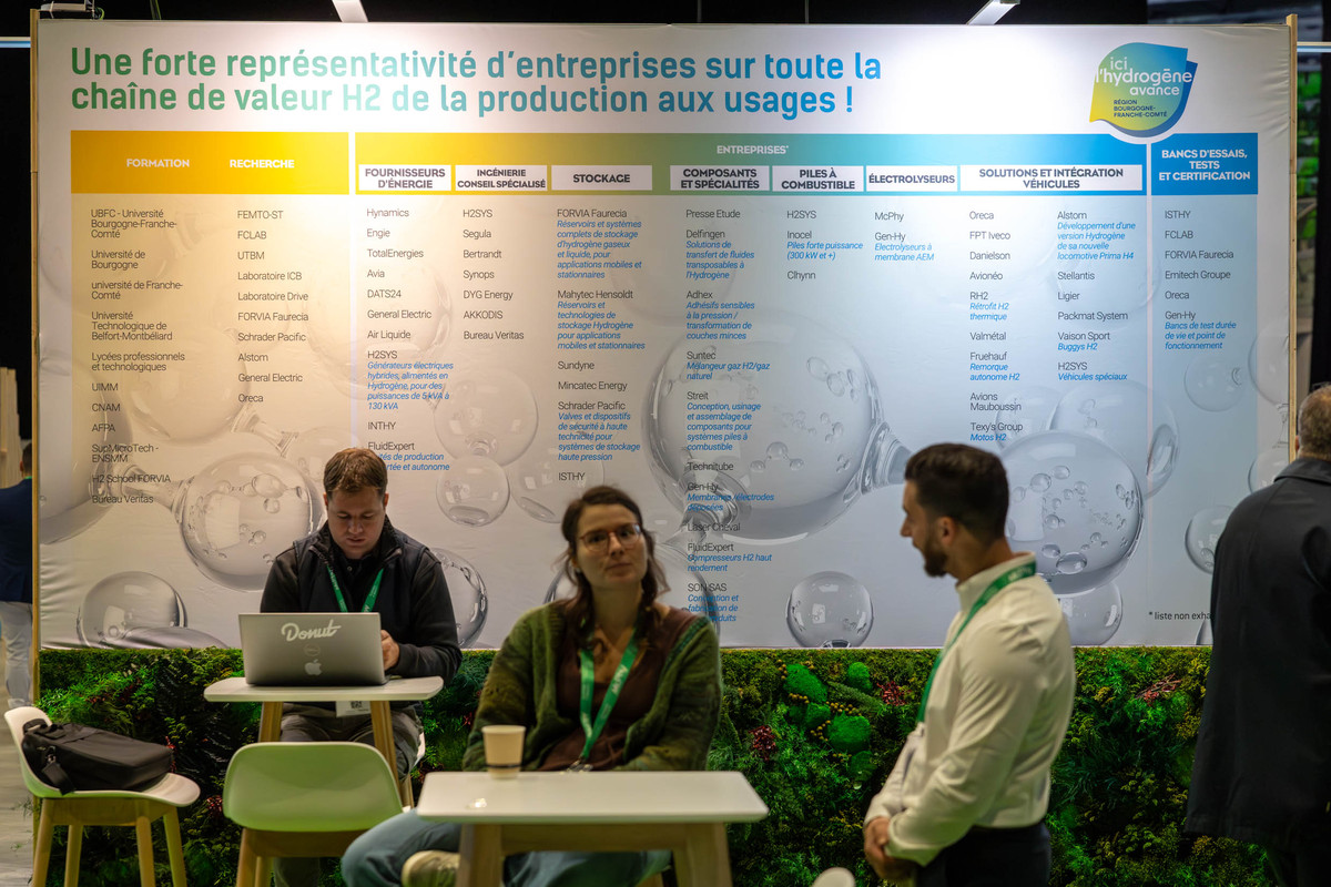 Sur le stand de la Région Bourgogne-Franche-Comté, on met en lumière la chaîne de valeur hydrogène du territoire, qui va de la production aux usages - Photo Xavier Ducordeaux