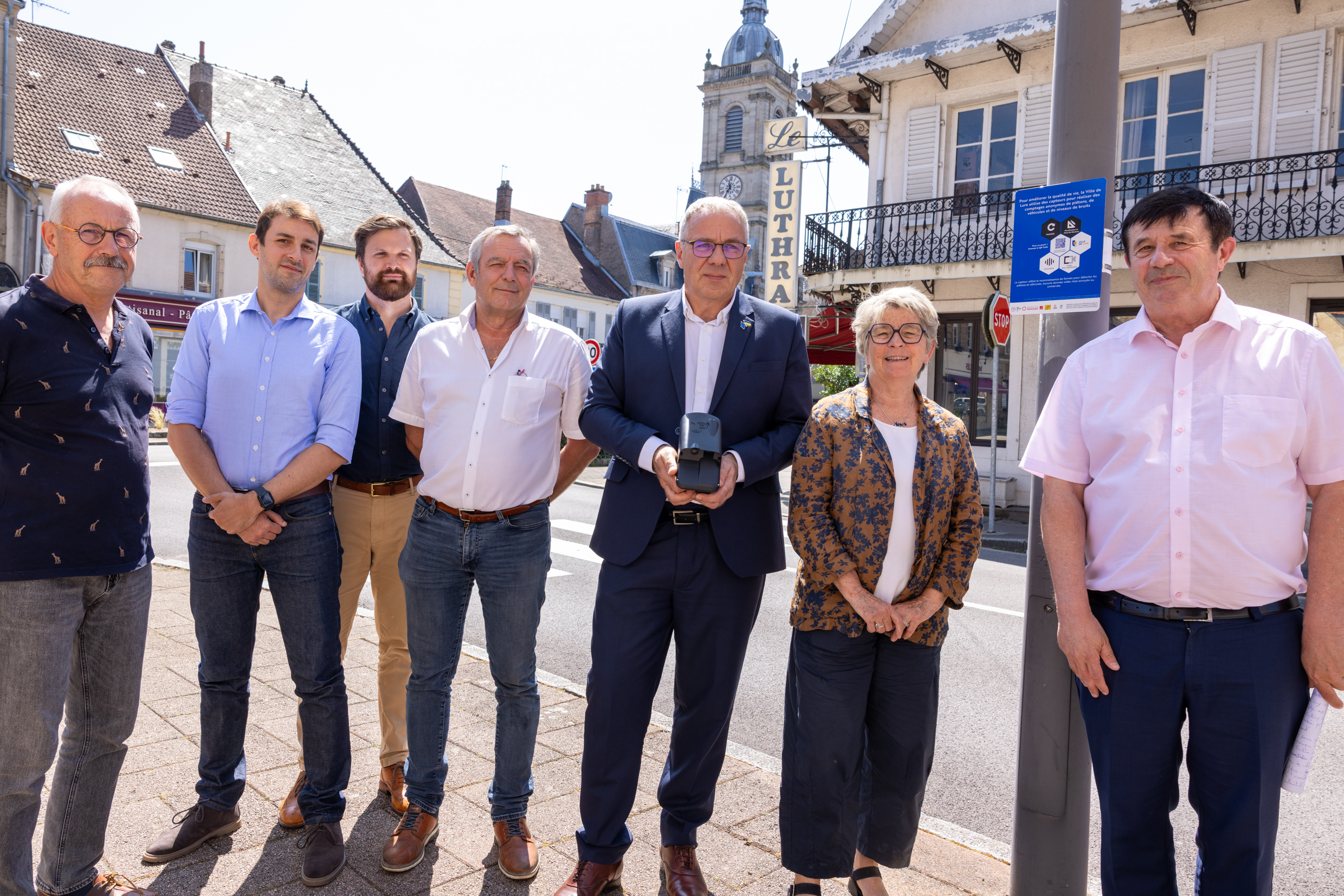 Elus et responsables du projet DataBFC-TID se sont retrouvés à Lure (Haute-Saône) pour faire un point d’étape sur l’installation des capteurs intelligents Upcity. Photo : Xavier DUCORDEAUX