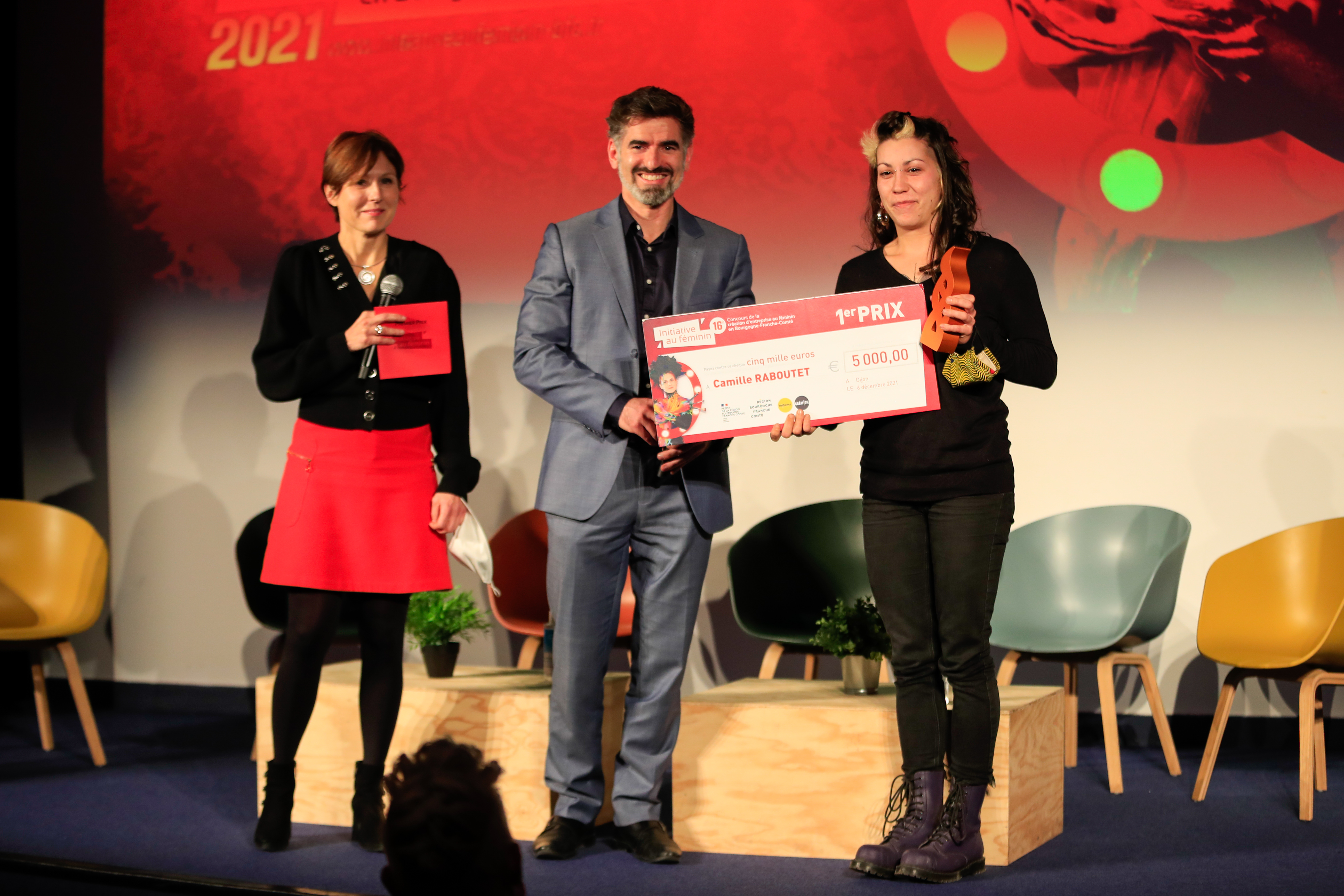 Les deux premiers prix ont été remportés par des artisanes d’un secteur encore très masculin, le bâtiment. Le premier a été attribué à Camille Raboutet : après s’être formée en écoconstruction, elle a créé en 2021 une entreprise de maçonnerie et d’isolation écologique Kam’Isole & Co à Quarré-les-Tombes dans l’Yonne. Recevoir ce trophée a constitué une grande surprise pour la lauréate qui avait souhaité, en déposant sa candidature, mettre en lumière « le fait qu’il n’y a pas un type de travail pour un genre humain et que nous sommes toutes et tous égaux dans le travail ».