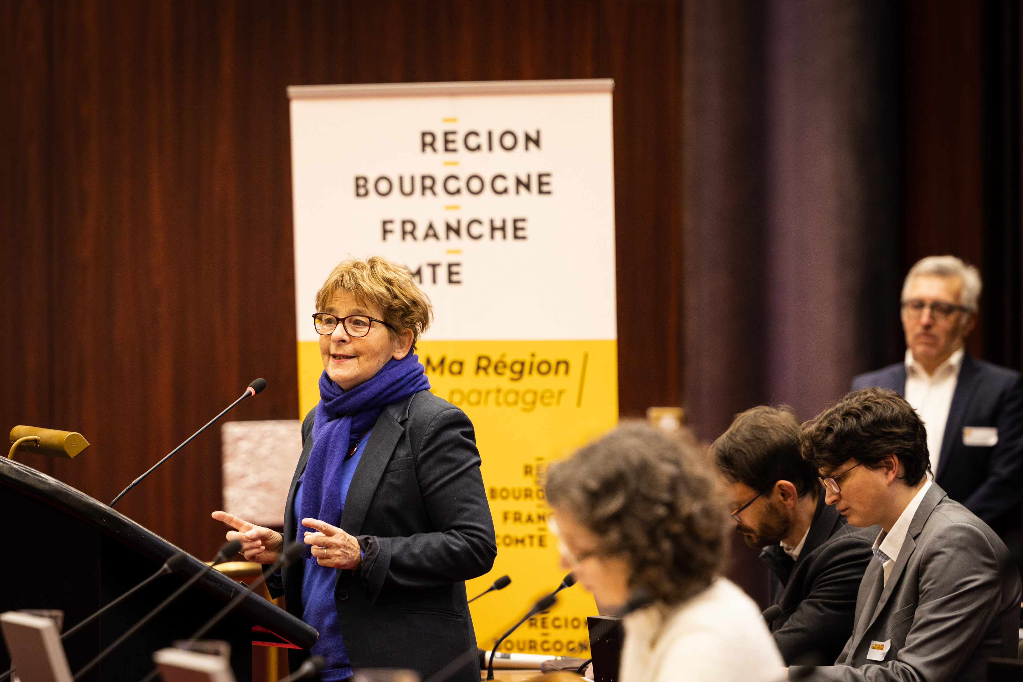 Marie-Guite Dufay, présidente de la Région Bourgogne-Franche-Comté, à la journée régionale des énergies renouvelables, mardi 13 décembre 2022 à Dijon - Photo Vincent Arbelet