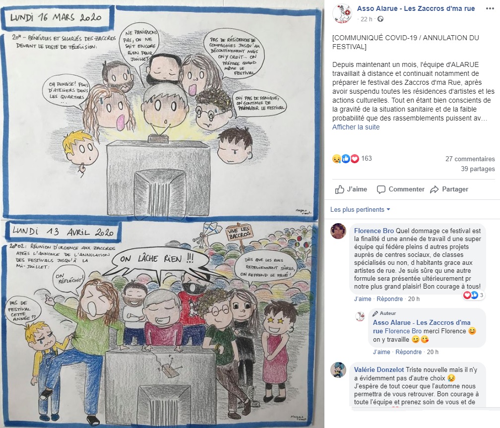 Pour beaucoup d’autres, c’est l’incertitude. Très attendu, Chalon dans la Rue (qui doit commencer le 22 juillet) communiquera semaine prochaine sur les suites à donner à son festival qui attire 140 compagnies d’arts de la rue et 220 000 spectateurs. Le Cluny Danse festival (71), les Zacros de ma Rue à Nevers (58) et le festival Bien urbain à Besançon (25) aimeraient trouver une date d’ici cet automne.