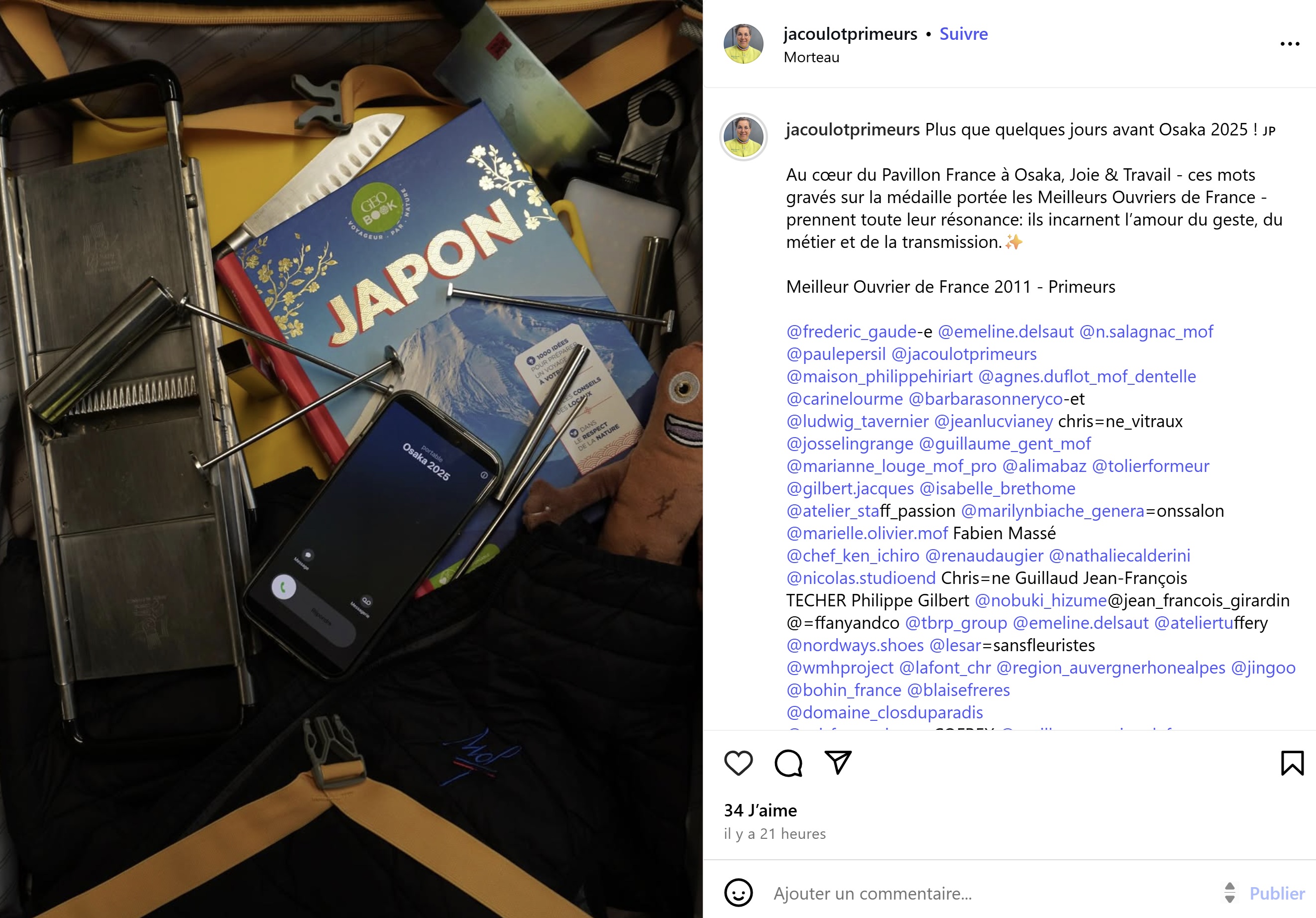 Flanquée de sa veste ornée du col Bleu Blanc Rouge, elle sera de permanence sur le pavillon France du 26 au 28 septembre. Les autres jours, elle alternera les prestations, tantôt au consulat, tantôt au temple du pavillon d’or avec les autorités nipponnes. Retour prévu le 1er octobre, le sentiment du devoir accompli : « Je suis tellement fière de porter les valeurs des Meilleurs ouvriers de France et de les véhiculer à l’autre bout du monde. Vive la France, vive la Bourgogne-Franche-Comté, et vive le Haut-Doubs ! »