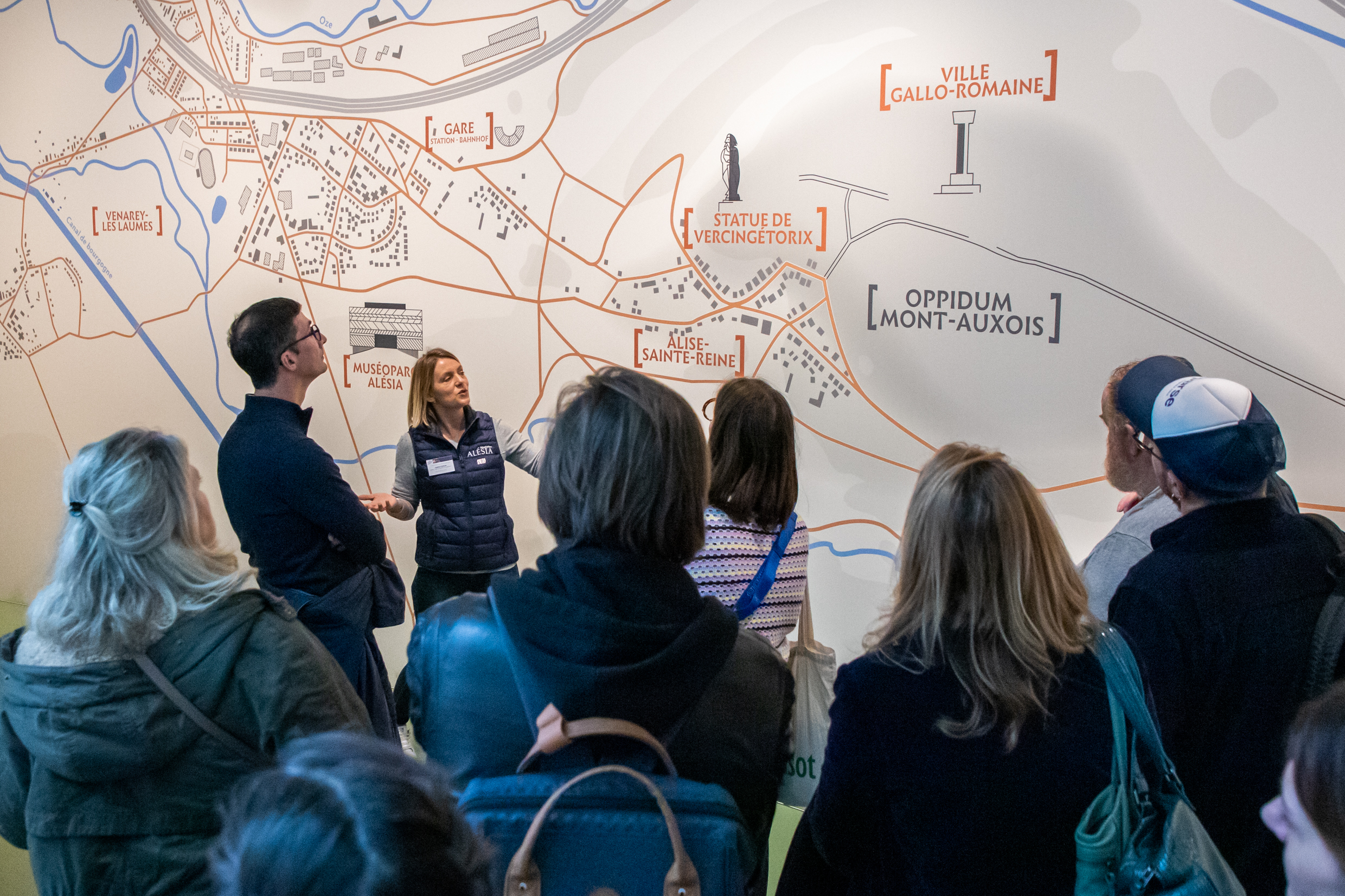 En choisissant le Muséoparc comme écrin, les organisateurs ont mis dans le mille. Difficile en effet de trouver, en Bourgogne-Franche-Comté ou ailleurs, plus belle scénographie que celle imaginée par les équipes d’Alésia. Complètement repensée en 2021, elle propose au visiteur une nouvelle manière de se plonger au cœur de la bataille entre Jules César et Vercingétorix : « l’ancienne scénographie était magnifique, mais on avait raté des choses en termes de médiation, précise Mathilde Le-Piolot-Ville, responsable de l’action culturelle du Muséoparc ; ça ne parlait pas à tous les publics. En 2020, on a tout détruit. Un petit chantier pharaonique ». Un budget aussi : 3 millions d’euros. Mais le résultat est à la hauteur de l’investissement : des bustes et des vitrines qui s’animent, des jeux numériques, un film mêlant illustrations et cartographie 3D, des archéologues virtuels présents à chaque étape du parcours … « On a supprimé les longs discours explicatifs, et on les a remplacés par deux phrases et deux/trois dessins : c’est nettement plus efficace » se félicite Mathilde Le-Piolot-Ville.