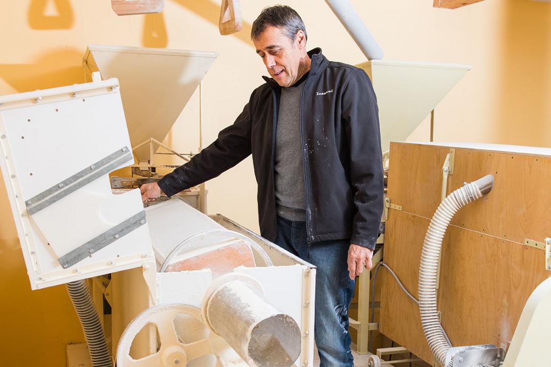 Sur les 65 hectares de Gilbert, poussent du blé en majorité, mais aussi du maïs, du petit et du grand épeautre, du sarrasin et du seigle. Ce qui l’intéresse, ce sont les variétés anciennes de céréales : « Le petit et le grand épeautre sont faibles en gluten. La demande est de plus en plus importante pour ce type de céréales ». Il s’occupe également d’un élevage de 250 poules lui aussi labellisé bio. Tout est transformé sur place et vendu directement à la ferme, sur les marchés ou à la coopérative locale.