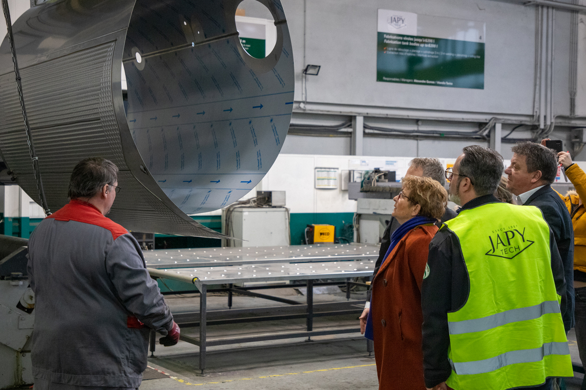Le dirigeant a ouvert les portes de son entreprise jeudi 12 janvier 2023, pour accueillir Marie-Guite Dufay. La Présidente de Région venait vérifier si les différentes subventions régionales accordées à l’entreprise avaient été correctement investies. Elle a rapidement été rassurée : la dernière subvention régionale (60 000 €) a été mise à profit pour acheter une machine permettant de fabriquer des fonds de cuves de grande capacité (jusqu’à 40 000 litres) ; « Avant, nous les faisions fabriquer en Italie. En internalisant cette fabrication, on réduit nos coûts de fabrication. Nous avons par ailleurs embauché 2 personnes à temps plein, en CDI. Et l’arrêt des navettes entre l’Italie et ici a un impact en matière de décarbonation, puisque nous évitons le rejet de 35 tonnes de CO2 par an. »
