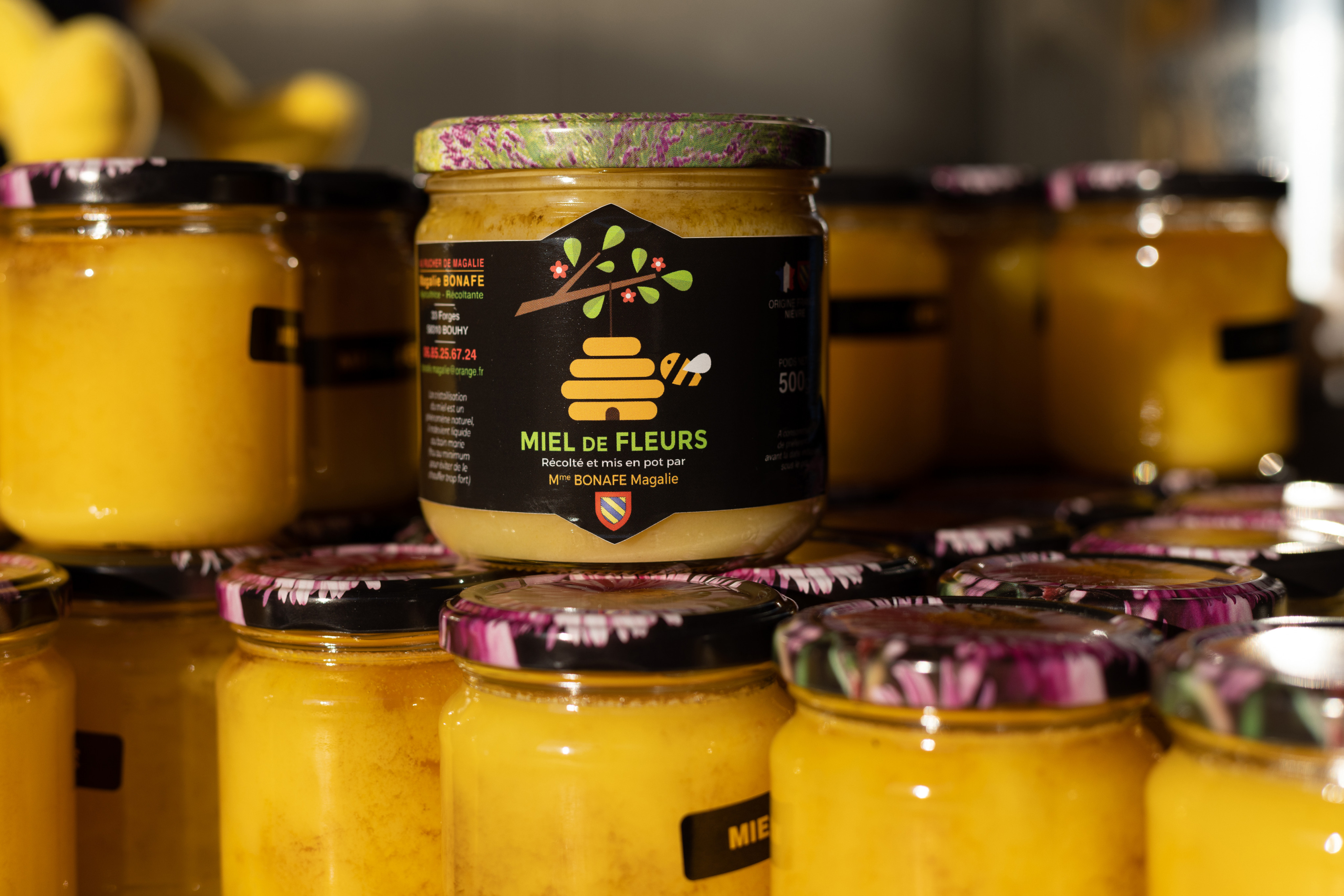 Le couple fait ses valises et s’installe à Bouhy, un petit village nivernais à la frontière du département du Cher. Deux ans plus tard, Magalie est à la tête d’un cheptel de 180 ruches. Elle produit plusieurs variétés de miel, en jonglant avec les saisons. Pour diversifier son offre, elle suit une formation auprès d’un pâtissier-chocolatier-confiseur en Auvergne, fin 2019. Elle affine alors sa recette de pain d’épices. Des bonbons au miel, du nougat, des financiers ou encore une pâte à tartiner ultra-gourmande au miel, aux noisettes et au chocolat viennent compléter la gamme. Son produit préféré ? « C’est le miel qui vient d’être récolté, celui qui sort de la ruche, que je goûte avant tout le monde, avec la cire que tu mâches à n’en plus finir. Ça, c’est magique. » Une expérience que Magalie propose de vivre lors des visites qu’elle organise à la ferme.