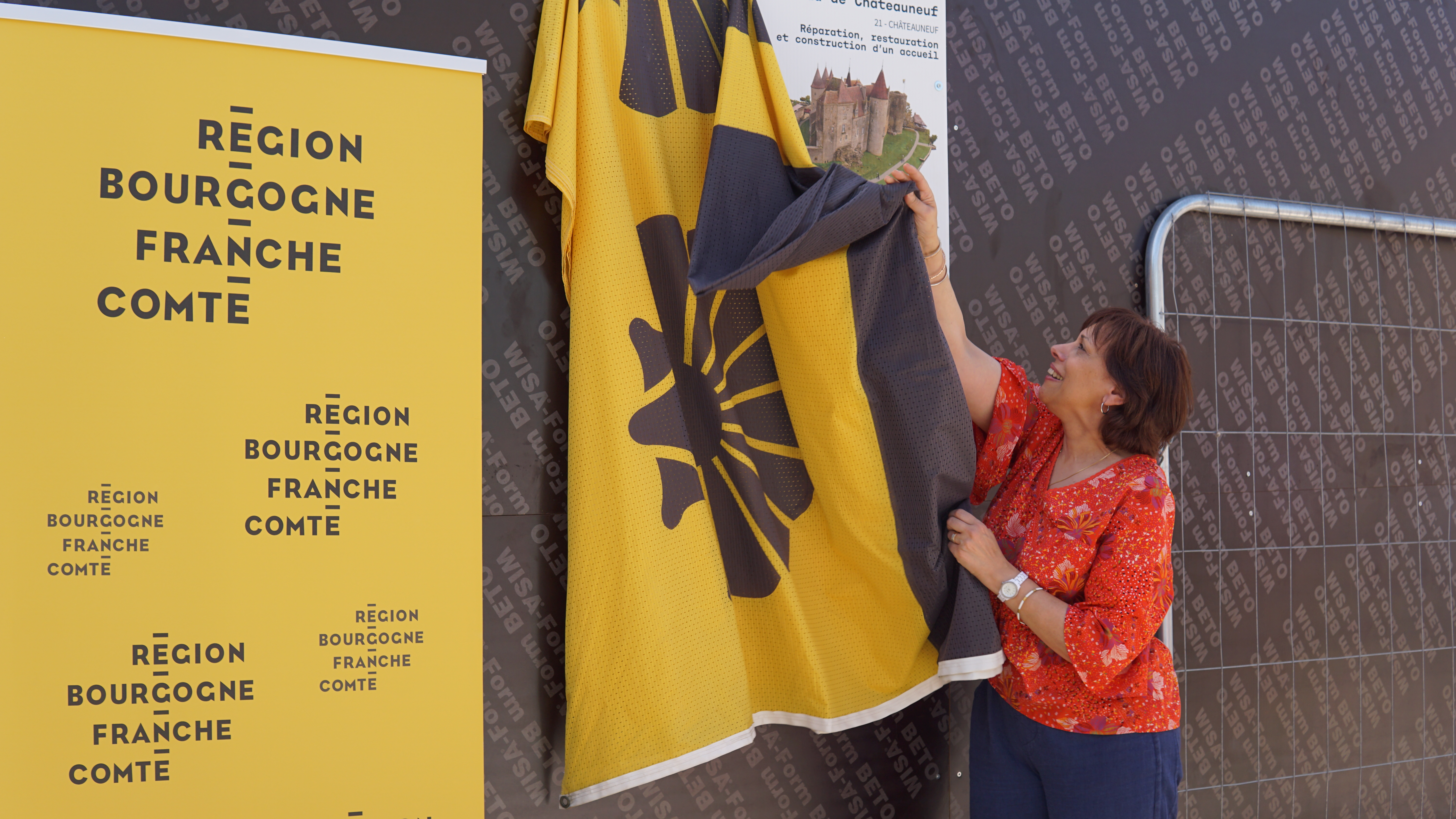 Samedi 18 juin 2022, les festivités étaient de rigueur au château de Châteauneuf-en-Auxois (21). Au programme : lancement de la saison culturelle, atelier d’archéologie et présentation de la première phase des travaux du château. Nathalie Leblanc, vice-présidente de la Région en charge de la culture, était sur place pour dévoiler la plaque des travaux.
