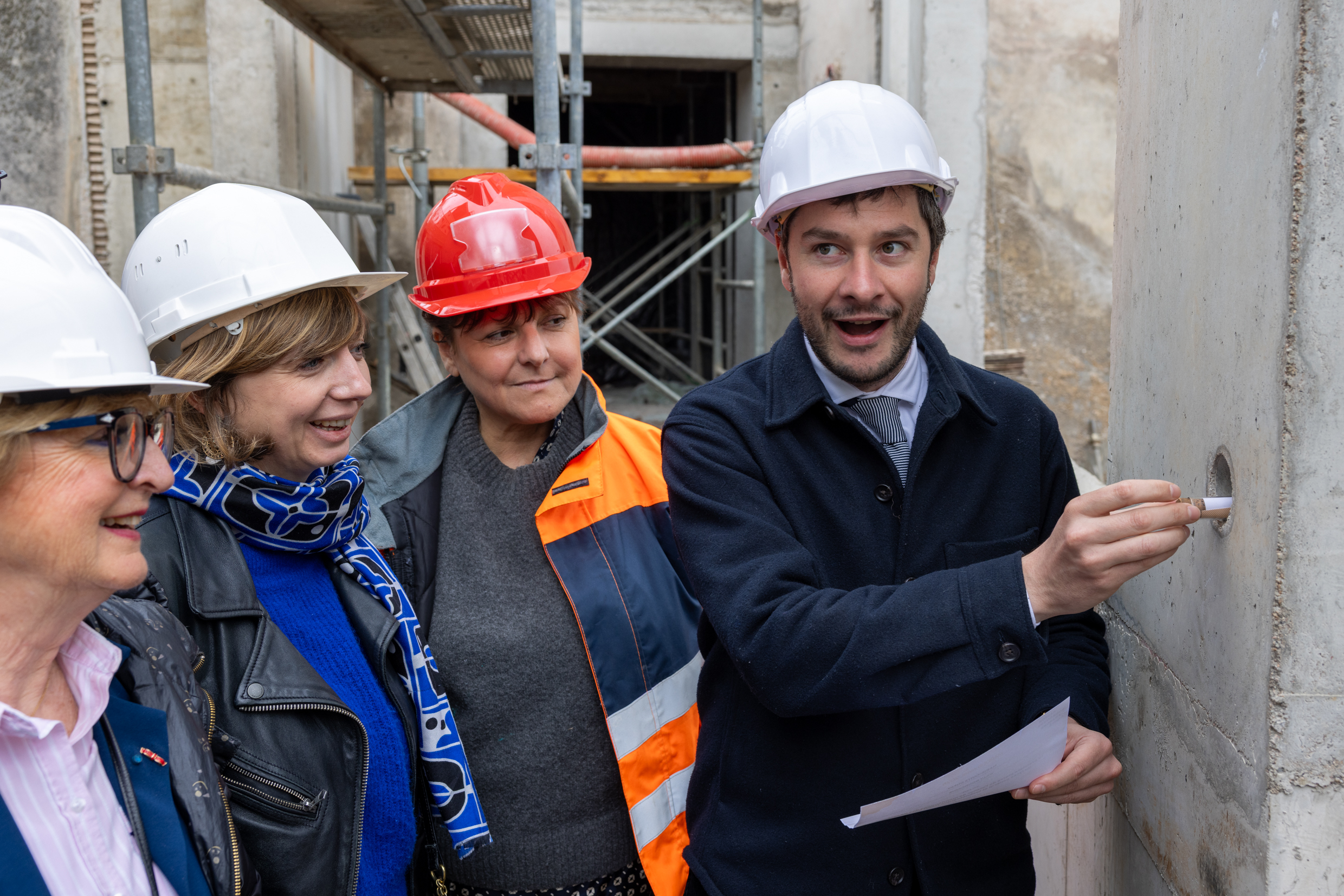 En guise de geste inaugural, Willy Bourgeois a déposé un parchemin dans les fondations du bâtiment sur lequel il est inscrit : « Construire, c’est s’inscrire dans le temps. C’est honorer le passé, bâtir le présent et préparer l’avenir. » Photo : Xavier Ducordeaux