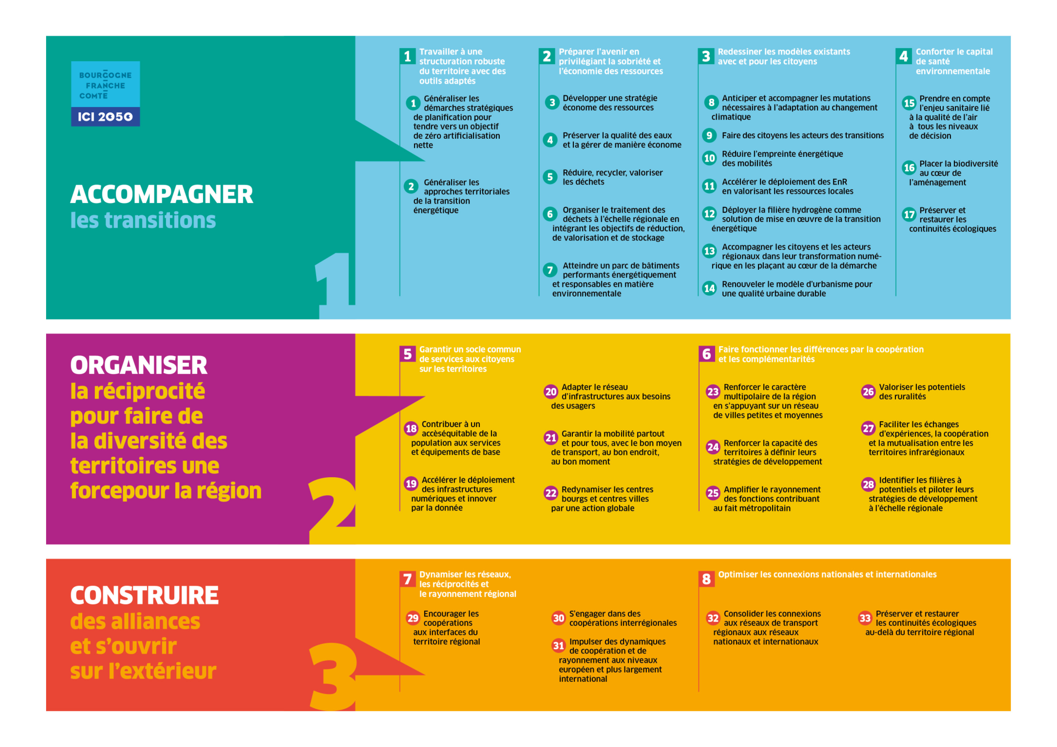 Voulu par la loi NOTRe de 2015, ce « schéma des schémas » multi-thématique et transversal (il couvre 12 domaines) dessine ce que sera la Bourgogne-Franche-Comté en 2050 afin de porter, dès aujourd’hui, des actions qui s’inscrivent dans cette vision d’avenir.