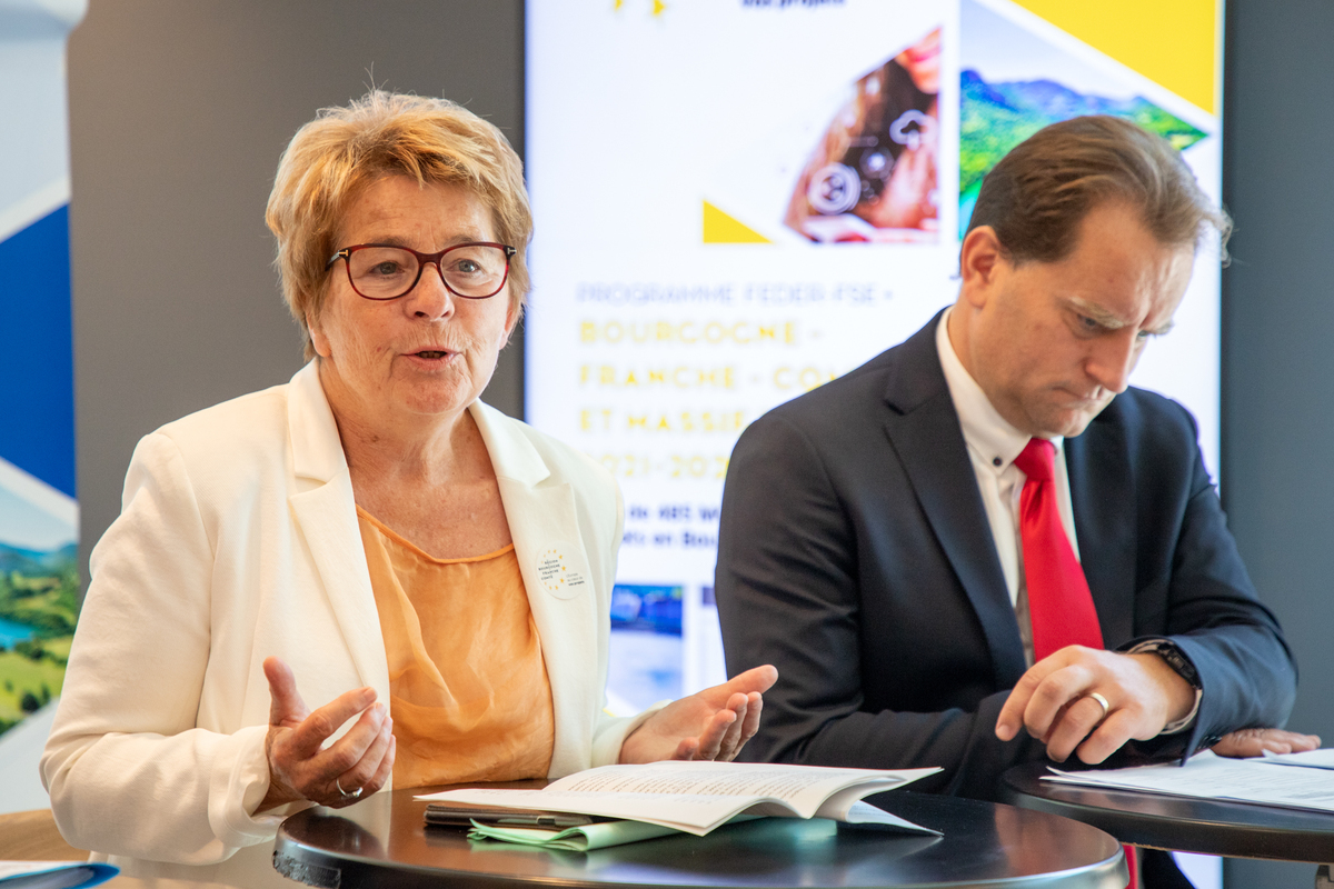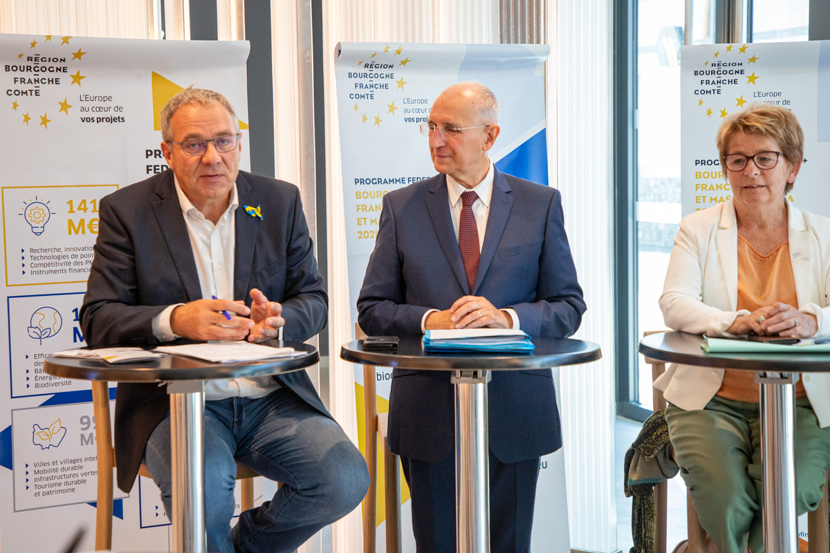 Adopté par la Commission européenne le 26 juillet dernier, le programme d’aides de l’Europe en Bourgogne-Franche-Comté a été officiellement lancé mardi 20 septembre. Ce sont 485 millions d’euros qui sont fléchés en direction de la Région sur la période 2021/2027 : « C’est 62 millions d’euros de plus que ce que proposait l’ancien programme » se réjouit Marie-Guite Dufay. La Présidente de la Région était chargée de présenter ce nouveau programme FEDER / FSE+, aux côtés de son vice-président en charge des politiques européennes Patrick Molinoz, du préfet de Région Fabien Sudry et de Jiri Plecity, chef d’unité en charge de la France à la Direction générale Emploi de la Commission européenne.