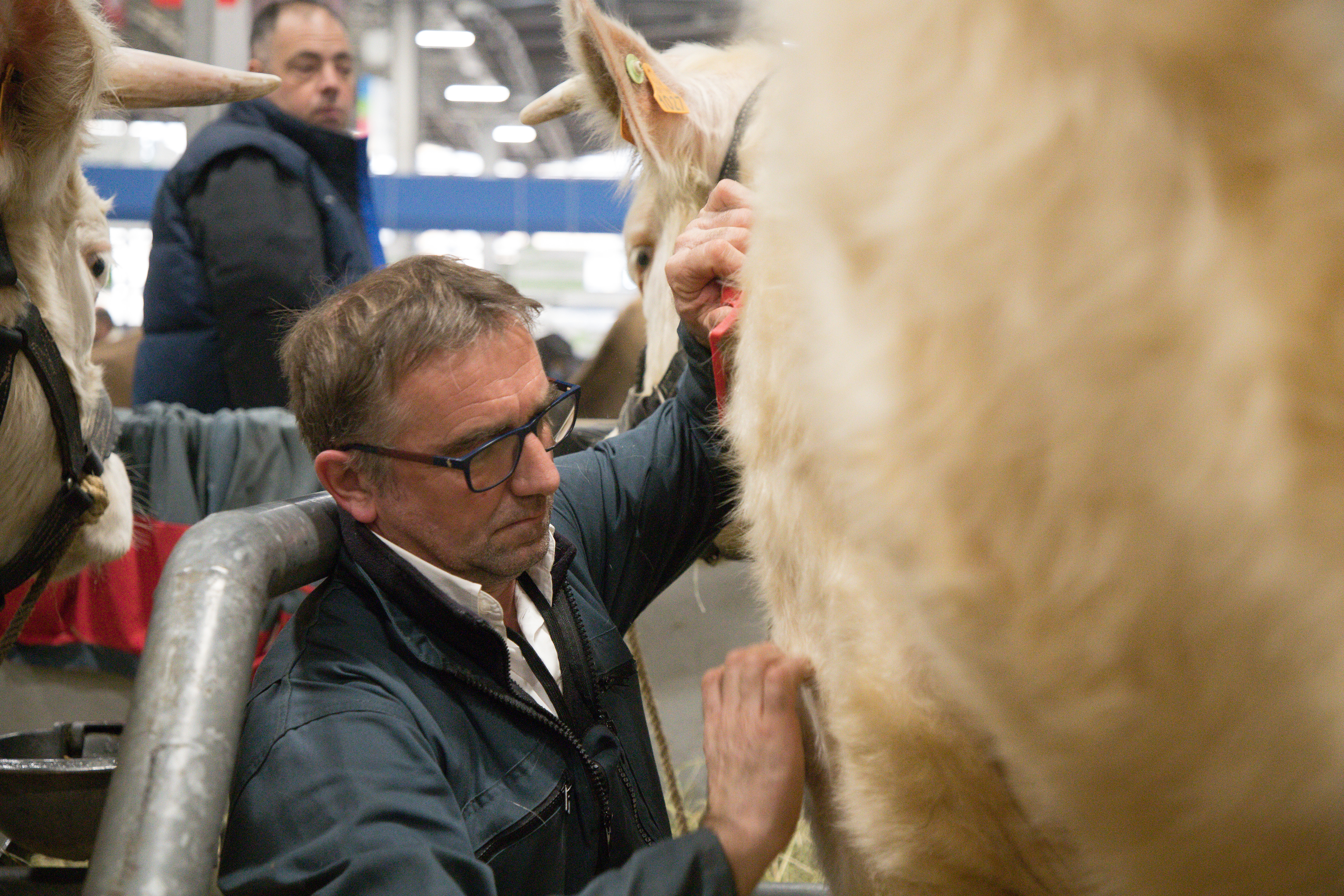 Cette journée de concours a démarré tôt pour Éric Lacombre. Dès cinq heures du matin, il s’est affairé à prendre soin de Savane sa jeune génisse Charolaise (que nous vous présentions dans le premier épisode), à la laver, à la préparer pour qu’elle ait toutes ses chances lors de la grande épreuve du jour : le concours général agricole à ParisExpo.