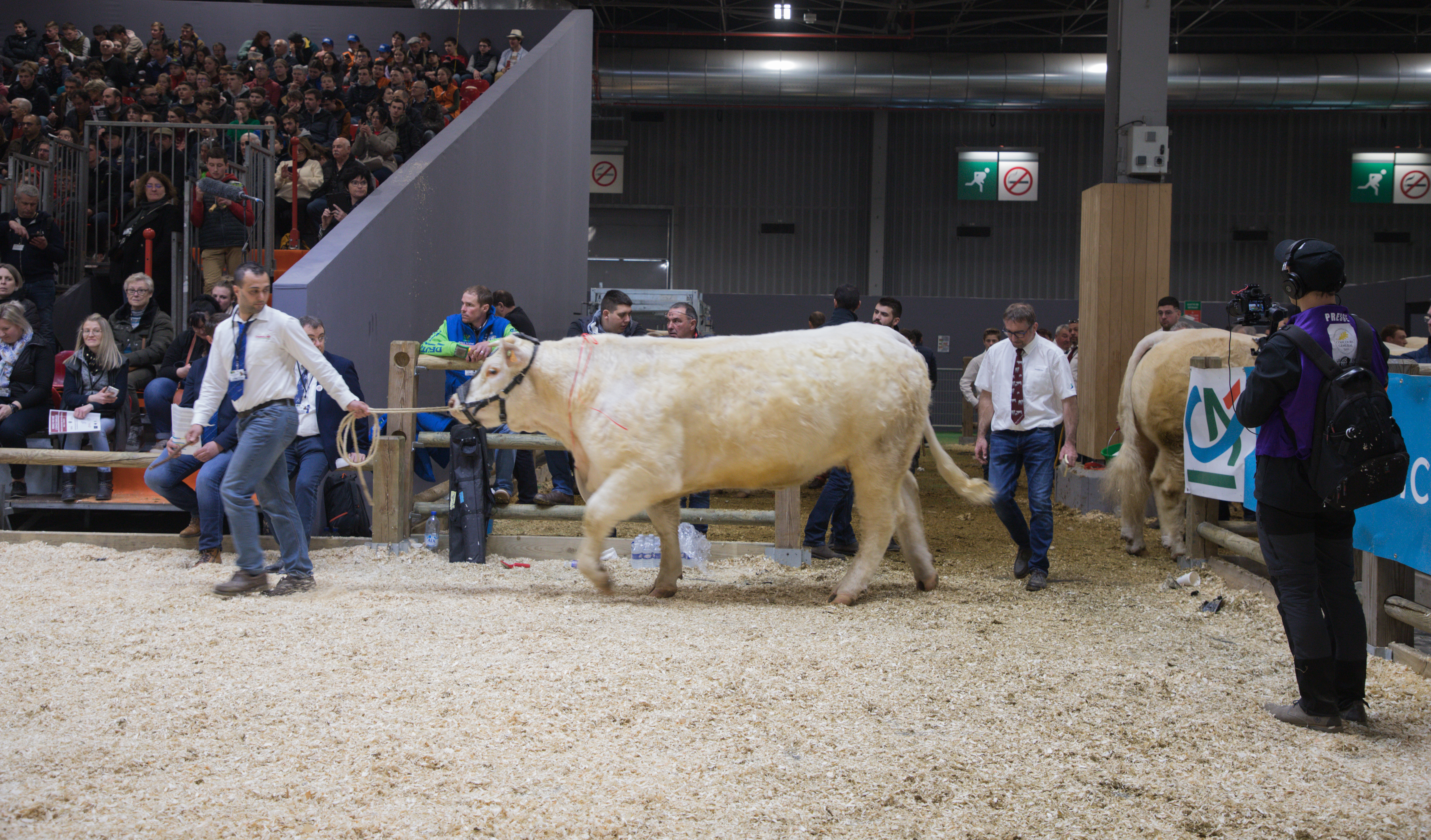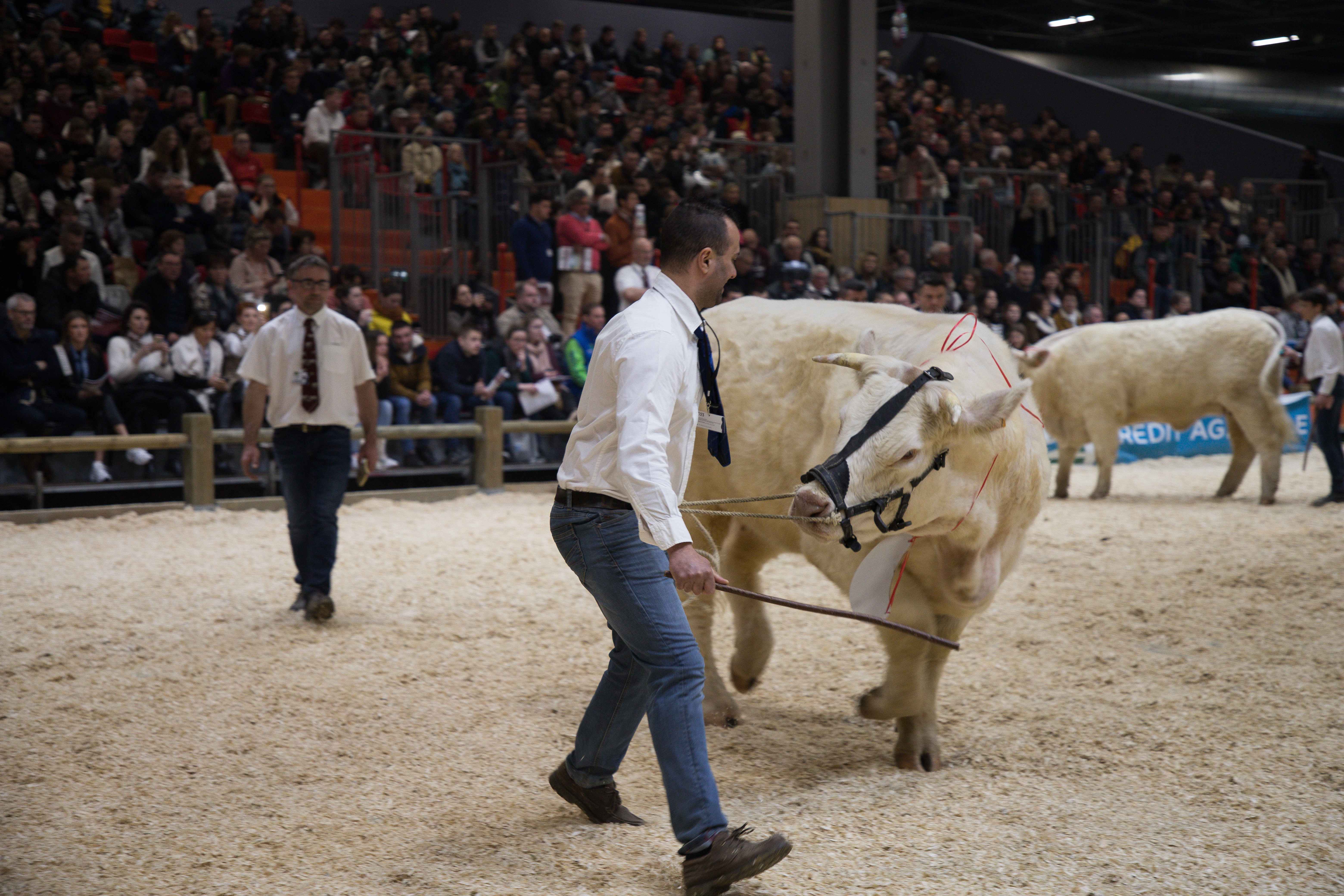 L’épreuve dure une bonne trentaine de minutes durant lesquelles les juges demandent aux éleveurs de faire marcher leurs animaux, de les faire tourner ou de s’arrêter. La tension est palpable. Le public est au rendez-vous dans les gradins.
