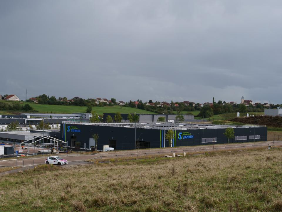 L'entreprise Bourgogne Franche-Comté Signaux a inauguré ses nouveaux locaux près de Besançon. Couvert de panneaux solaires et bien isolé, le bâtiment de 7000 m2 produira plus d'énergie qu'il n'en consomme !