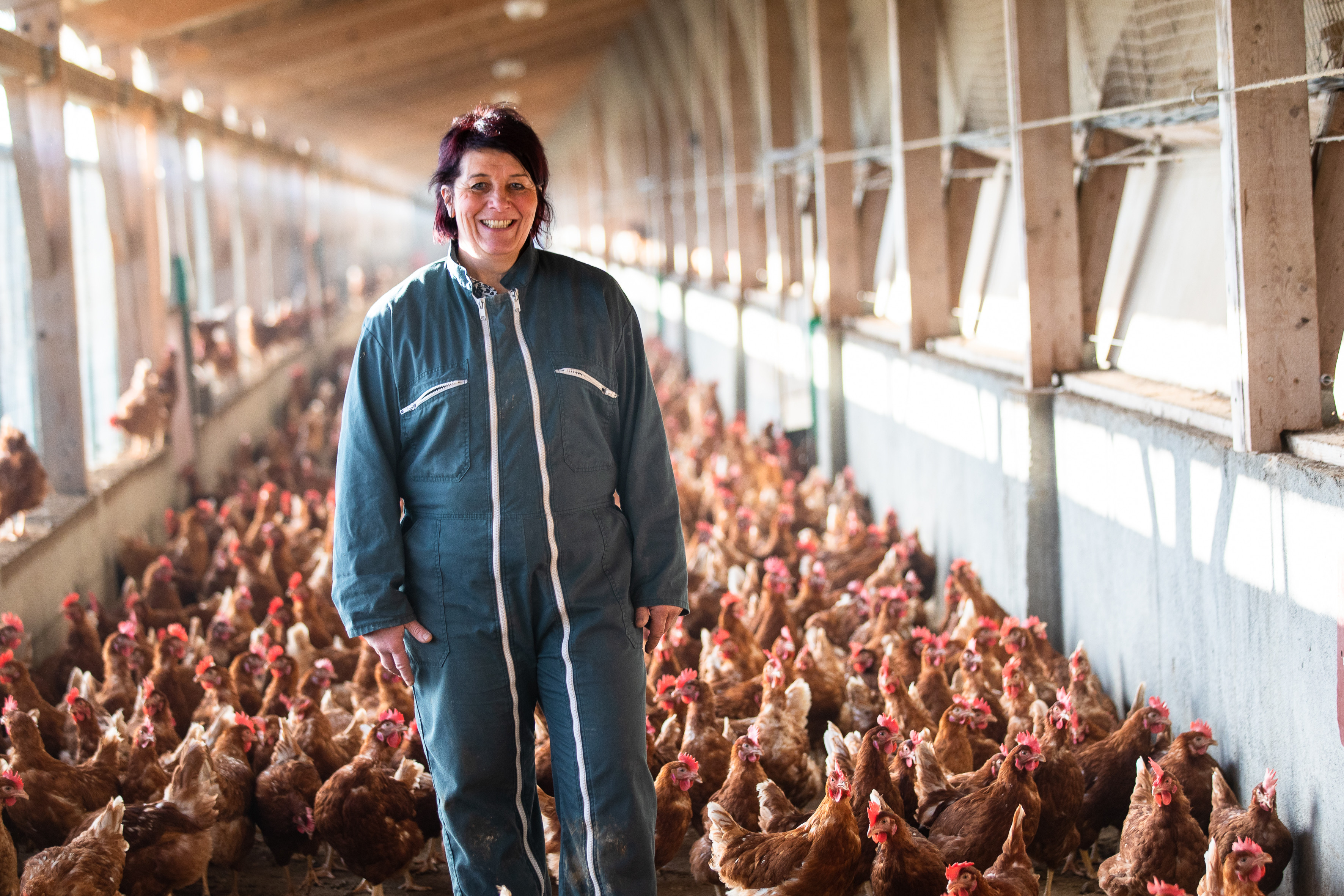 Tige de blé dans le bec, la poulette, aux couleurs orangées et au chapeau vert, avance d’un pas déterminé. Le logo qui orne ses boîtes d’œufs et ses chalets distributeurs correspond bien au tempérament de Christelle Koenig, l’agricultrice de Vauthiermont, qui a lancé en 2016 la marque « Le bon’Oeuf est dans le pré » : volontaire, enjoué et doté d’un « petit grain de folie ».