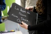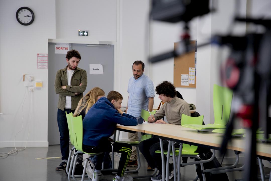 L’une a l’œil rivé sur le moniteur, un second tient le clap, l’autre s’occupe de placer les illustrations sous la caméra pendant que le dernier, au micro, pose sa voix. Tous ont leur attention portée sur Mathieu Peset, réalisateur, orchestrant ce petit tournage « en conditions réelles ».