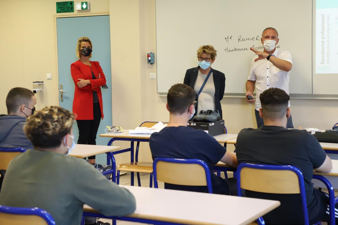 « C’est une voie d’avenir que l’on ne sait pas encore suffisamment valoriser » : accompagnée d’Océane Charret-Godard, vice-présidente chargée des lycées, de l’offre de formation, de l’apprentissage et de l’orientation, Marie-Guite Dufay a  décidé de mettre en lumière la voie professionnelle lors de ses traditionnelles visites de rentrée. Jeudi 2 septembre 2021, au lycée Mathias de Chalon-sur-Saône et au lycée Jules-Haag de Besançon, la présidente de la Région Bourgogne-Franche-Comté est venue saluer des élèves de seconde professionnelle.