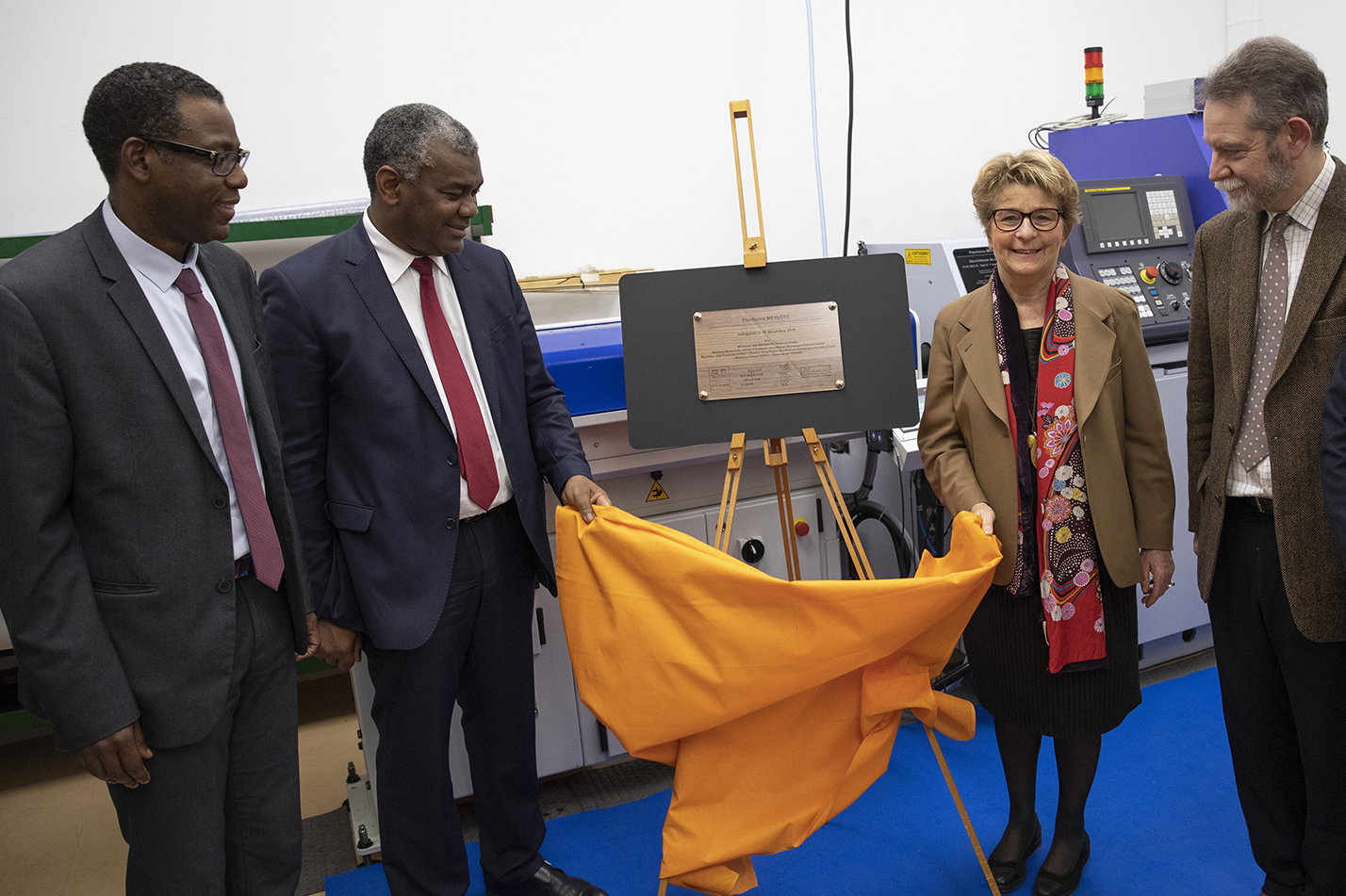 Pascal Vairac, directeur de l’ENSMM, Joël Mathurin, préfet du Doubs, Marie-Guite Dufay, présidente de la Région Bourgogne-Franche-Comté et Jean-François Chanet, recteur de la région académique ©David Cesbron / Région Bourgogne-Franche-Comté