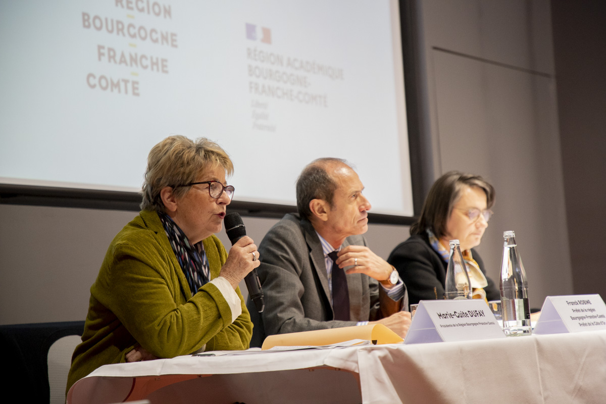 A leurs côtés, la présidente de Région Marie-Guite Dufay, le préfet Franck Robine et la rectrice de la région académique de Bourgogne-Franche-Comté ont rappelé qu’un total de 41,5 millions d’euros (à parité Région-Etat) sur trois ans étaient alloués et que 3,9 millions d'euros avaient déjà été engagés sur le volet régionalisé.