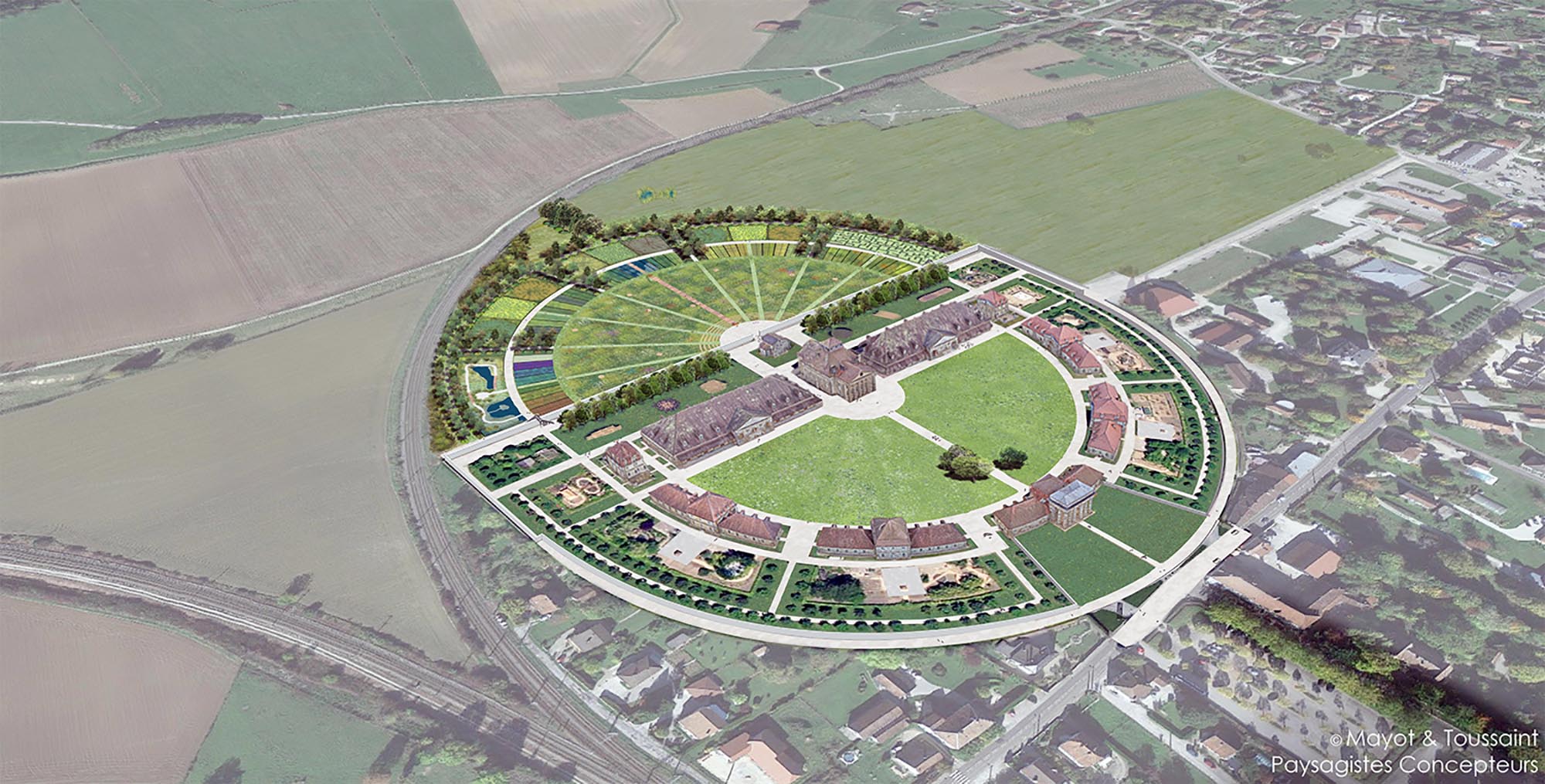 Des travaux sont en cours à la Saline royale d’Arc-et-Senans (25) pour faire évoluer le site UNESCO en un îlot de biodiversité inspiré par la ville idéale de l’architecte Claude-Nicolas Ledoux. Nom du projet : « Un cercle immense ».