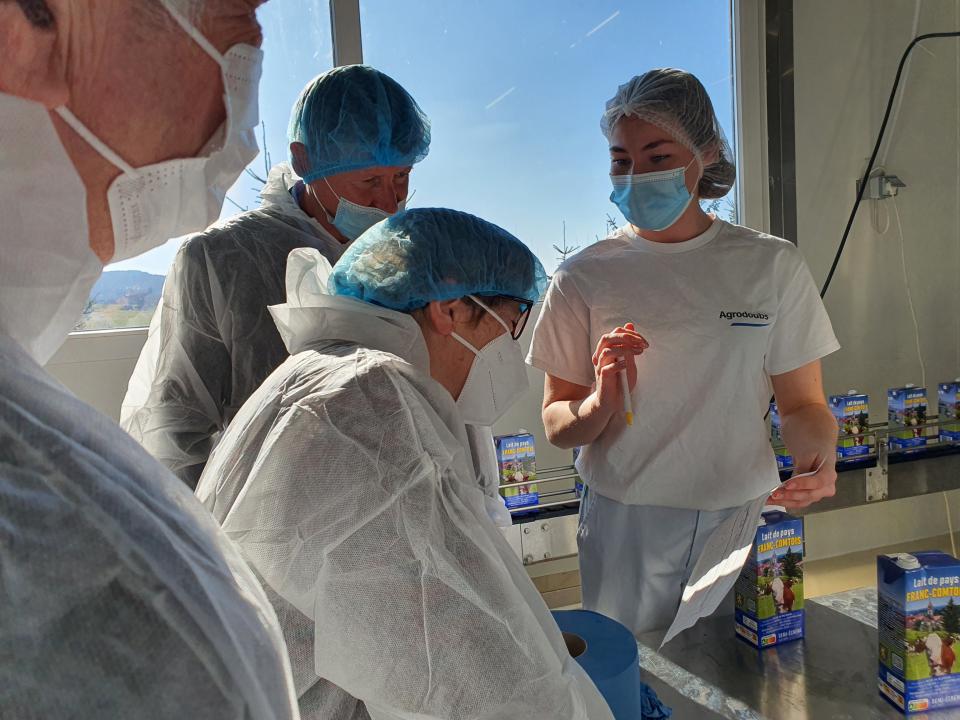 Marie-Guite Dufay, présidente de Région, a inauguré lundi 28 février 2022 une ligne de production de lait UHT de pays franc-comtois, à Flagey (25).